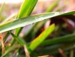 Krople deszczu na źdźble trawy.