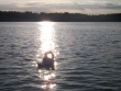łabędź - jezioro wieczorem