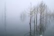 Szarzyzna mglistego poranka nad stawem