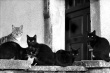 cztery koty czarne i szary-zgrupowanie