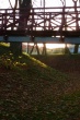 Widok jednego Bunkra znajdującego się w Białym Borze w tle dużo złotych i różnokolorowych liści barwy jesieni w tle również tzw."Zielony Mostek".