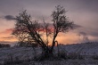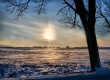 zima o zachodzie słońca